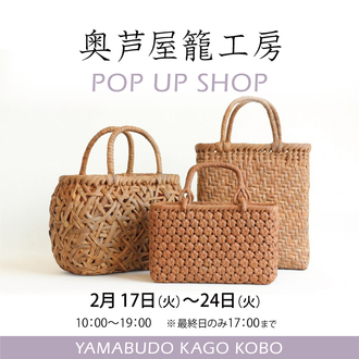 国産の山葡萄籠bagのみを取り扱う奥芦屋籠工房のPopupshopを開催します。一点ごとに風合いの違う天然素材の山葡萄籠は、使い込むほどに味が出て…...