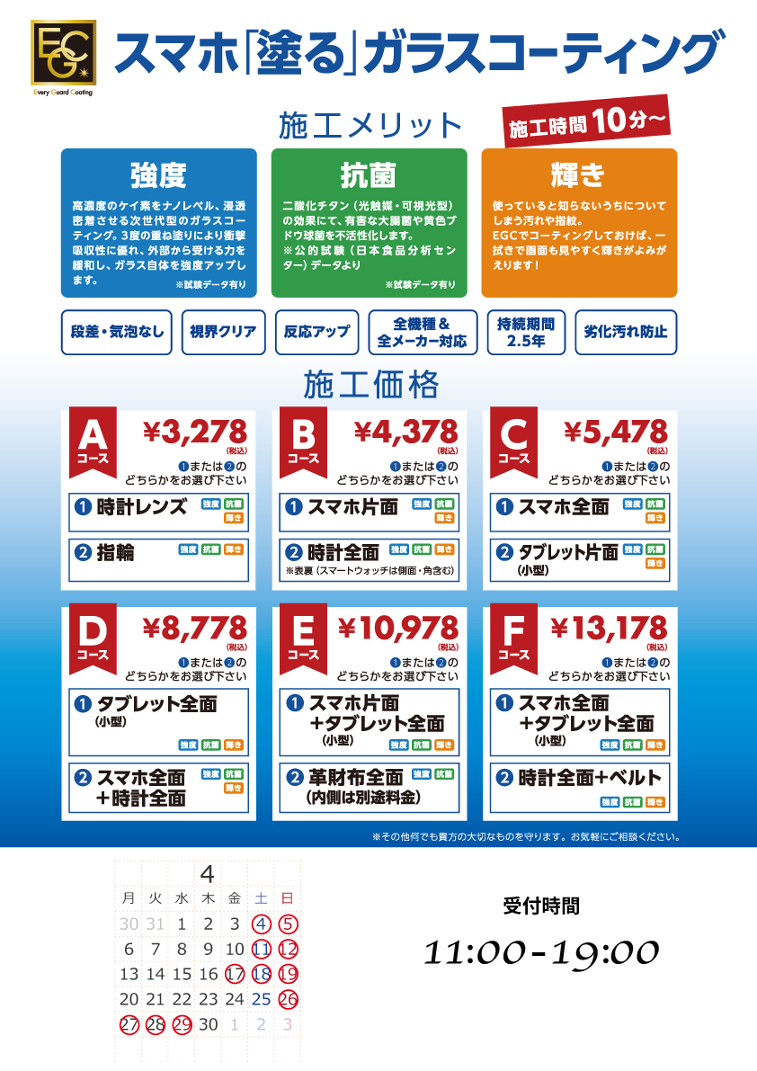 【ららぽーと富士見店】EGC スマホの「塗る」ガラスコーティング 4月のご案内
