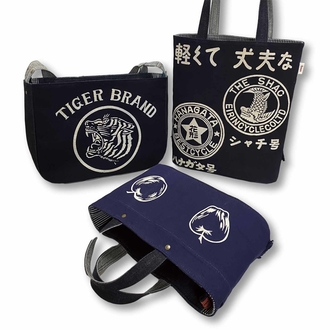 使われないで残っていた、昭和のビンテージ前掛けの柄や文字を活かし国産のデニムと組み合わせて普段使いできるバッグに生まれ変わらせました。一点物の前掛…...