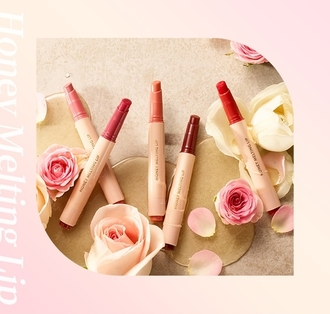うるおい効果を逃がさない特別容器を採用した、カチカチノック式のリップスティック『ネイチャーリパブリックハニーメルティングリップ』唇にのせた瞬間、と…...