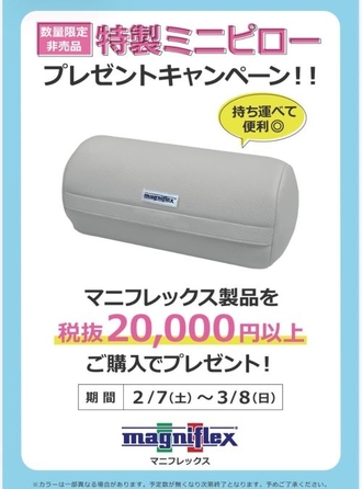 新生活シーズンにおすすめの特別企画を実施中!期間中、マニフレックス製品を税抜20,000円以上ご購入のお客様へ✨ミニピロー(非売品)を1点プレゼン…...