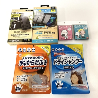 梅雨、湿気による身体の不快感を軽減したり、アウトドアや旅行等でも使える、イザという時にあったら便利な防災グッズを紹介します。左)本田洋行手袋シャン…...
