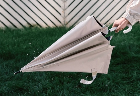 通常の5倍の降雨試験をクリア(最高等級:5級撥水)。耐風仕様の傘骨を採用し、風速30m/sの検査もクリアしています。