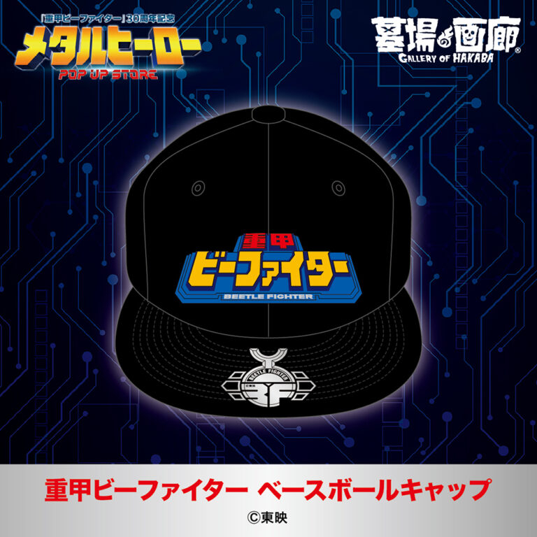 重甲ビーファイター ベースボールキャップ/5,500円(税込) サイズ:フリー メタルヒーローシリーズの人気作『重甲ビーファイター』から、印象深いタイトルロゴを立体的な刺繍で施したオリジナルキャップが登場!重厚(重甲)感あふれるロゴをフロントに再現し、バイザー部分にはビーファイターのエンブレムロゴがホイルシールとして貼付!甲虫並に防御力アップだ!