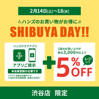 【渋谷店限定】ハンズ渋谷店のお買い物がお得!2月14日(土)~18日(水)の「SHIBUYADAY」ハンズクラブアプリ本会員限定※本会員登録が必要…...