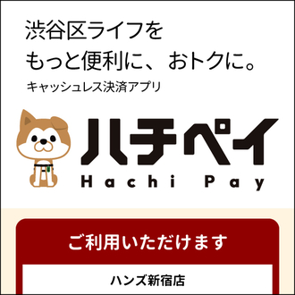 渋谷区ライフをもっと便利に、おトクに。ハチペイ[HachiPay]スマートフォン専用のアプリで、渋谷区内の加盟店で支払いができる、渋谷区独自の新し…...