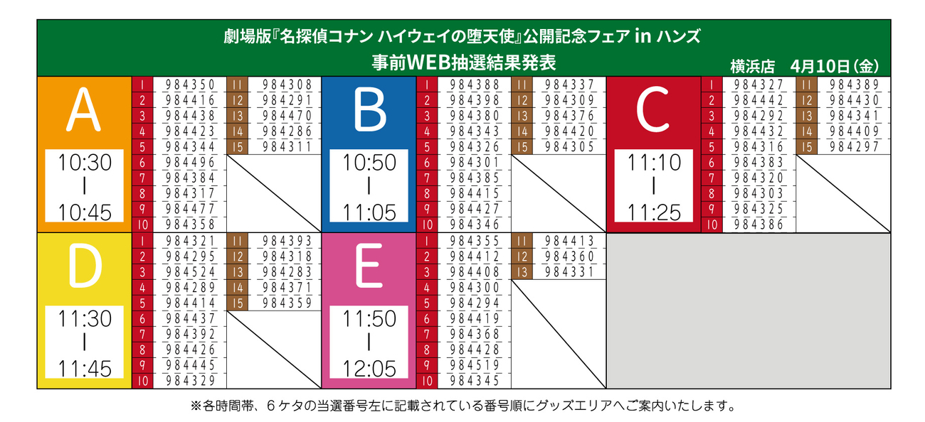 WEB抽選 当選番号発表のご案内厳選なる抽選のうえ、時間帯および時間帯整列順を発表させていただきます。