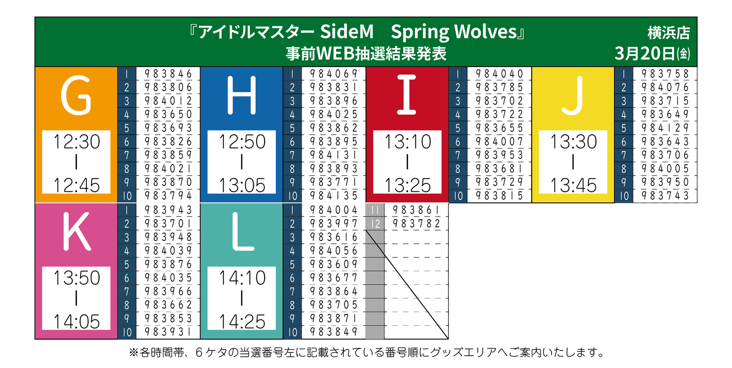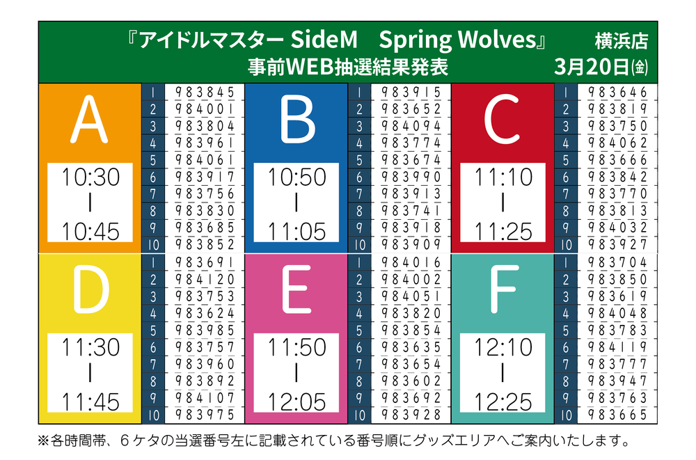 WEB抽選 当選番号発表のご案内厳選なる抽選のうえ、時間帯および時間帯整列順を発表させていただきます。